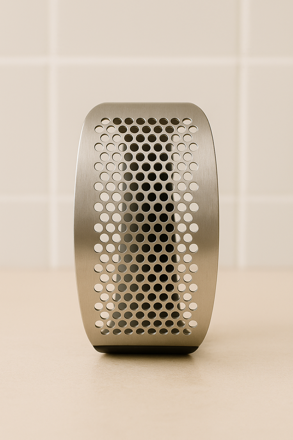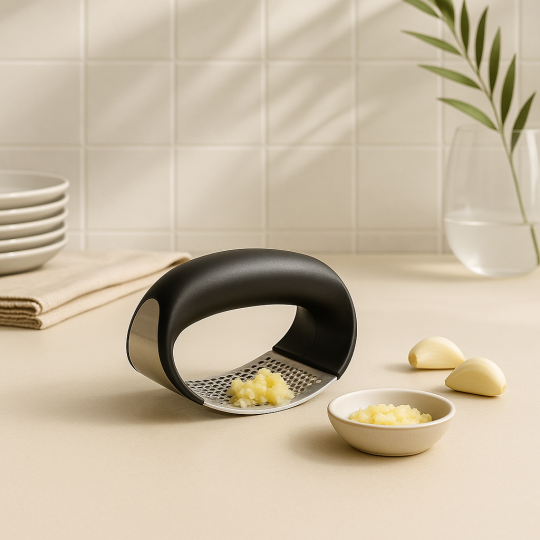Aço inoxidável durável : Feito de aço inoxidável premium, este espremedor de alho é feito para durar. Ele resiste à corrosão, garantindo que permaneça em excelentes condições mesmo com uso frequente. A resistência do material garante um utensílio de cozinha duradouro, capaz de suportar as tarefas diárias.