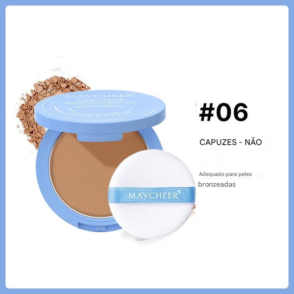 Disfarça poros e manchas: nosso pó faz maravilhas para esconder poros grandes e imperfeições, dando a você uma pele lisa e impecável. É como ter um maquiador profissional no seu bolso! 🌟