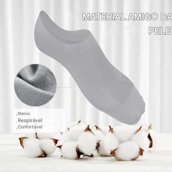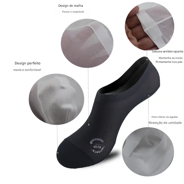 A camada superior desta meia é feita de malha respirável,o fundo é algodão.Tem boas propriedades de transpiração, reduzindo o odor e crescimento bacteriano.Mantém a temperatura fria no verão quente.